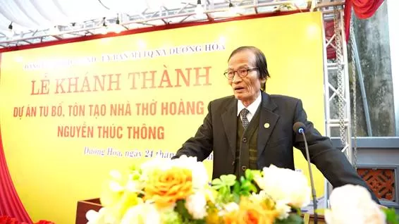 Phát biểu tại buổi lễ, đồng chí Nguyễn Đình Khoa – Uỷ viên BTV Đảng uỷ, Phó Chủ tịch Thường trực UBND xã ghi nhận, biểu dương sự cố gắng, tinh thần trách nhiệm của cấp ủy, chính quyền thôn cùng sự đồng thuận, chung tay đóng góp của nhân dân trong quá trình triển khai dự án; đồng thời nhấn mạnh việc khánh thành công trình không chỉ đáp ứng nhu cầu sinh hoạt văn hóa, tín ngưỡng của nhân dân mà còn góp phần quan trọng trong công tác bảo tồn, phát huy giá trị di sản văn hóa truyền thống, giáo dục lịch sử cho thế hệ trẻ.