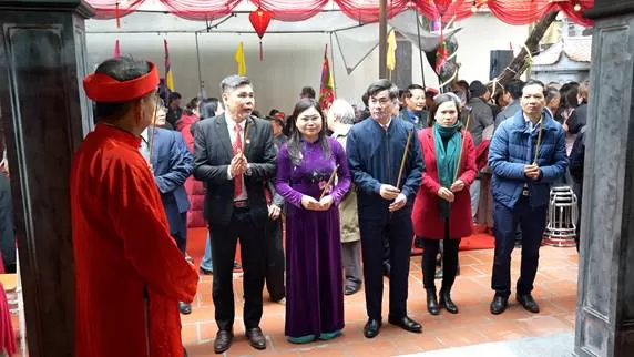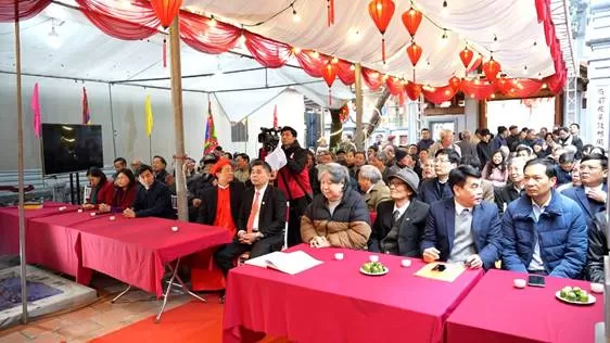 Tới dự có đồng chí Nguyễn Thanh Tú – Phó Bí thư Thường trực Đảng uỷ; đồng chí Lê Đức Phóng – Phó Bí thư Đảng uỷ, Chủ tịch UBND xã; các đồng chí trong BTV Đảng uỷ; lãnh đạo các phòng, ban, ngành xã; các ông/bà Bí thư chi bộ, Trưởng ban công tác mặt trận, Trưởng, phó các thôn cùng các cụ, các ông, bà gia đình họ tộc; cùng dự có Giáo sư sử học Lê Văn Lan, ông Đặng Bằng – Nguyên Trưởng ban quản lý di tích danh thắng tỉnh Hà Tây.