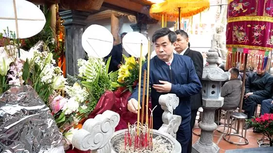 Các đồng chí lãnh đạo xã dâng hương tại nhà thờ