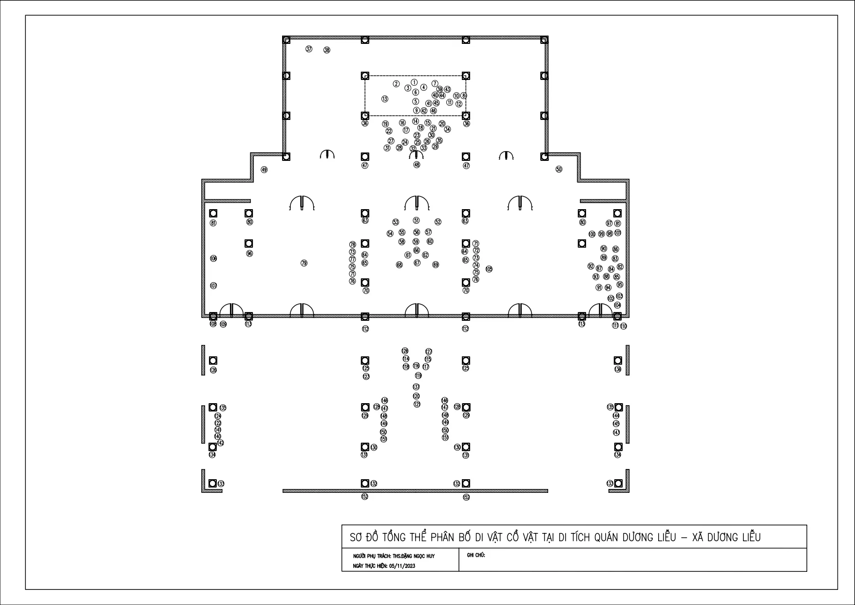 Các di vật: 1 chuông đồng cao 52cm, đường kính miệng 29 cm, quai chuông là hai con rồng đấu lưng vào nhau, rồng có dáng vẻ dữ tợn, mắt lồi, râu dài, vây lưng nhọn mang dáng dấp nghệ thuật thời Nguyễn. Ngoài ra, còn có 2 tượng đá cao bằng người thật, 2 cỗ kiệu, 1 hương án chạm trổ tinh vi, 2 sắc phong và nhiều di vật khác.